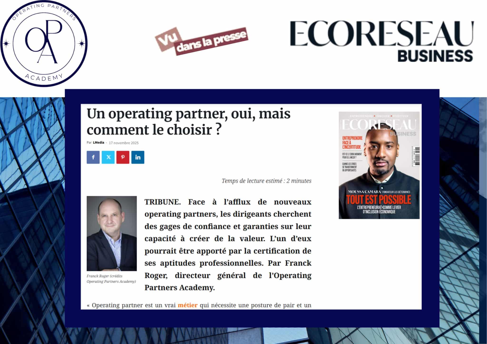 Franck Roger, DG de l’OPA, signe une tribune dans Forbes sur le métier d’Operating Partner